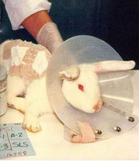 揭秘 :惨不忍睹的 动物实验 旧照片(图) 化妆品,在兔子身上做德来塞皮肤测试。