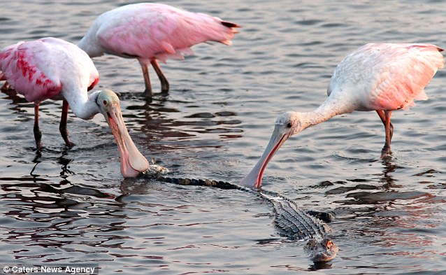 美国公园惊现大鸟啄食鳄鱼奇观