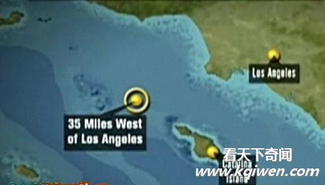 导弹发射位置据信在洛杉矶西部,卡达琳纳岛北部,距离海岸大约35英里。