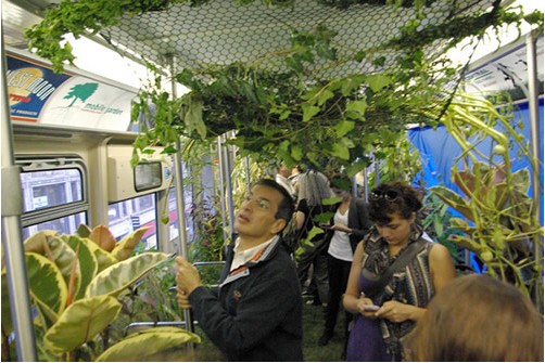 这个“列车上的移动花园”是“轨道艺术”的一部分,车厢的座位、窗户和地板完全被绿色植物覆盖,这个移动花园车厢环绕芝加哥市区环形轨道运行了5个小时,连同还有其他50位艺术家的作品。 (责任编辑:admin)